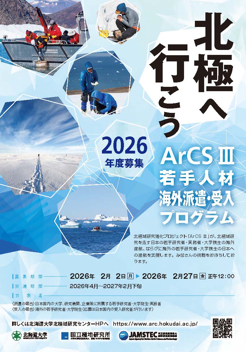応募締切を延長します!2026年3月9日(月)17時まで:2026年度 ArCSⅢ 若手研究者海外派遣参加者を募集します! | 北海道大学 北極域研究センター